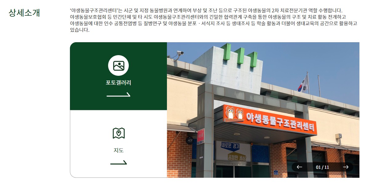 | 야생동물 구조 | 다친 야생동물 구조 요청 처리 | 신속한 대응 |