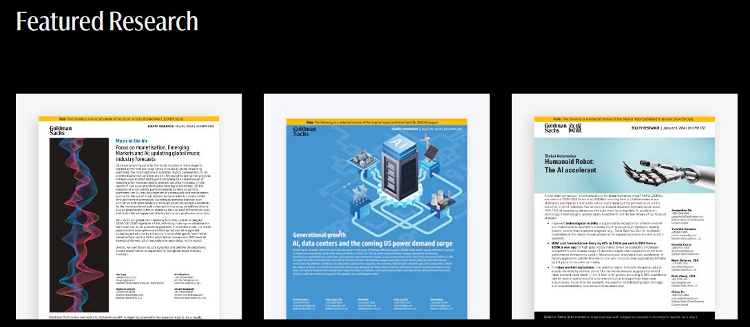 골드만삭스 리서치는 경제 전망, 시장 분석, 투자 전략 등 다양한 주제에 대한 전문가의 분석과 견해를 제공하여 투자자와 기업이 글로벌 경제와 금융 시장을 이해하고, 전략적 결정을 내리는 데 도움을 줍니다.