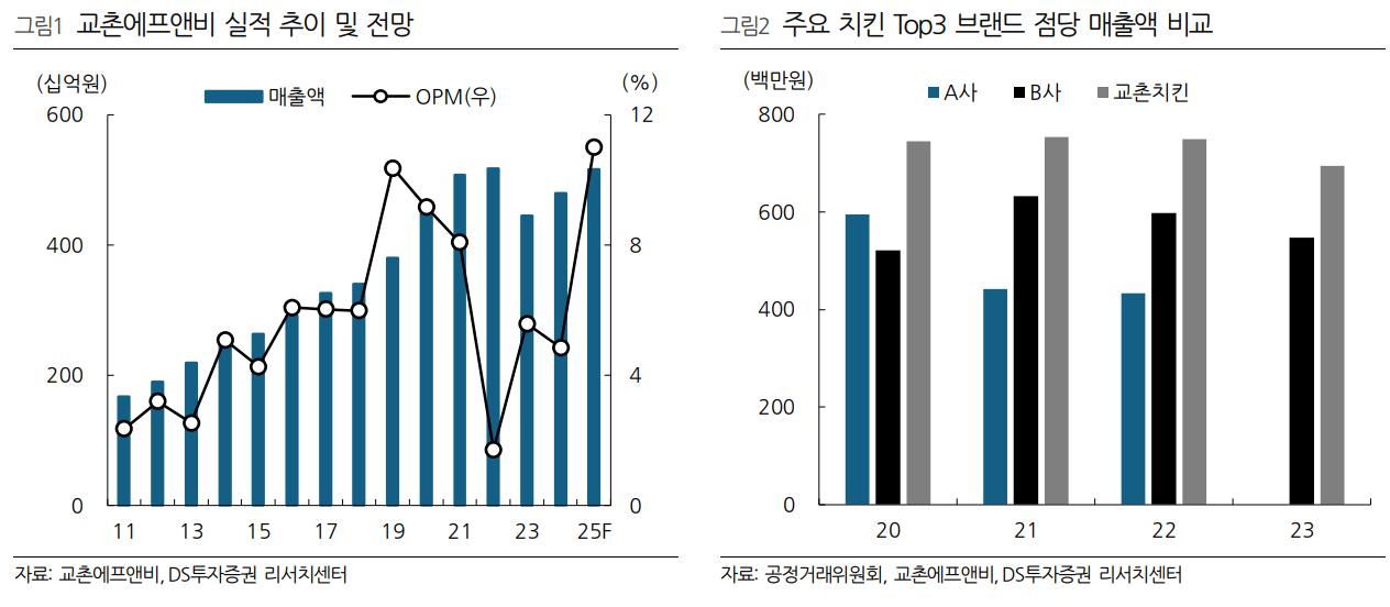 교촌에프앤비는 국내 치킨 프랜차이즈 시장에서 점당 매출액과 브랜드 로열티에서 우위를 점하고 있음. 국내는 가맹지역본부 직영 전환으로 본사 수익성이 개선될 것으로 보이며, 자사 앱 강화와 효율적인 마케팅 전략이 가맹점 수익성 증대와 소비자 충성도를 강화하고 있음. 해외 시장에서는 아시아 진출국 중심의 마스터 프랜차이즈 전략과 미국 직영점 리뉴얼을 통해 장기적 성장이 기대됨.