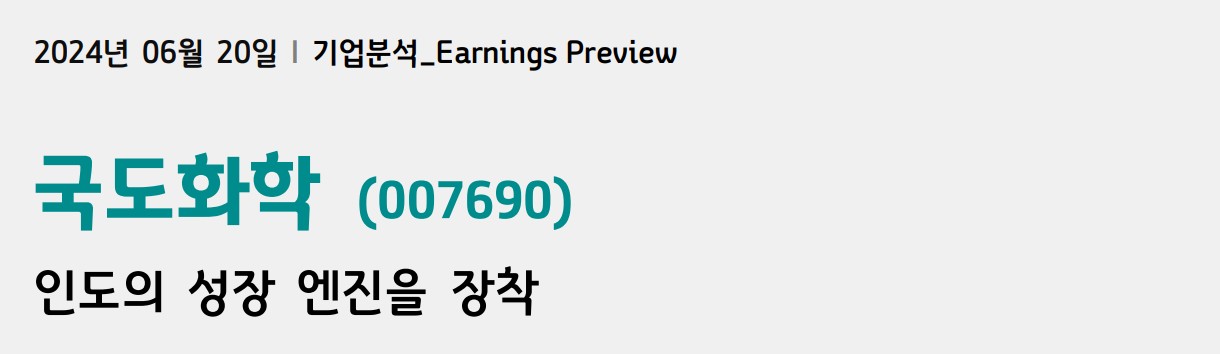 국도화학, 인도 시장 성장 가능성, 글로벌 에폭시 업황 개선, 안정적 재무상황 등 긍정적 요인 갖춤. 최근 실적 발표에서 영업이익 크게 개선, 지속적 성장 기대. 주가 전망 밝아, 투자자들에게 좋은 기회 될 것.
