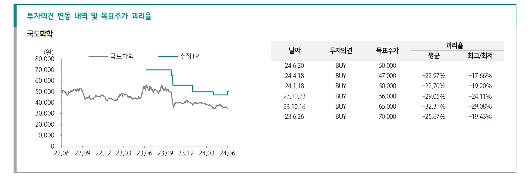 국도화학 목표주가 50,000원으로 상향 조정. 인도 시장 성장과 글로벌 에폭시 업황 개선 반영. 현재 주가 34,900원, 목표주가 대비 상승 여력 충분.