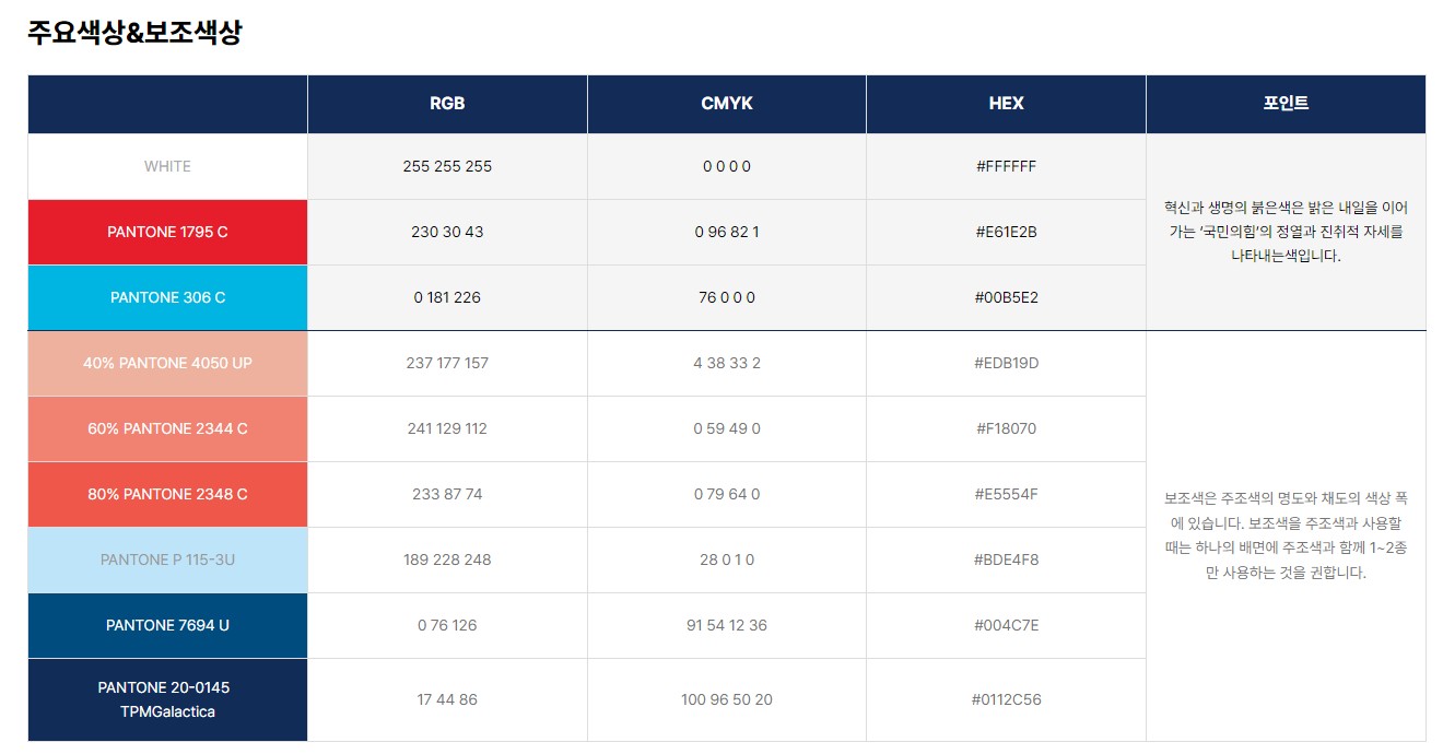 아래 국민의힘 로고 색상정보도 참고해주세요.
