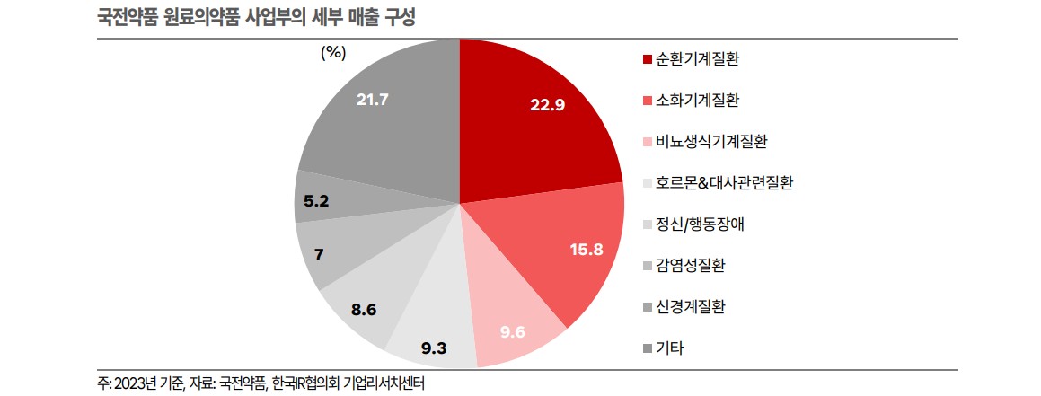 국전약품은 원료의약품과 소재사업의 두 축을 기반으로 성장하고 있습니다. 원료의약품 부문에서는 고령화로 인한 만성질환 치료제 수요 증가가 지속될 것으로 보이며, 소재사업 부문에서는 OLED 소재의 상용화와 반도체, 이차전지 소재 개발이 향후 매출 성장을 견인할 것입니다. 나노입자 항암제 시장 진출 또한 중요한 성장 동력으로 작용할 것입니다.