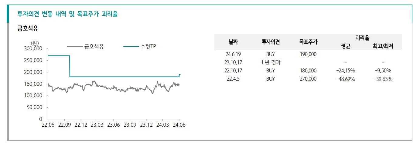 금호석유의 목표주가는 190,000원으로 설정되어 있으며, 이는 천연고무와 합성고무 시장에서의 지속적인 성장 가능성을 반영한 것입니다. 따라서 현재 주가 대비 약 31%의 상승 여력이 있습니다.