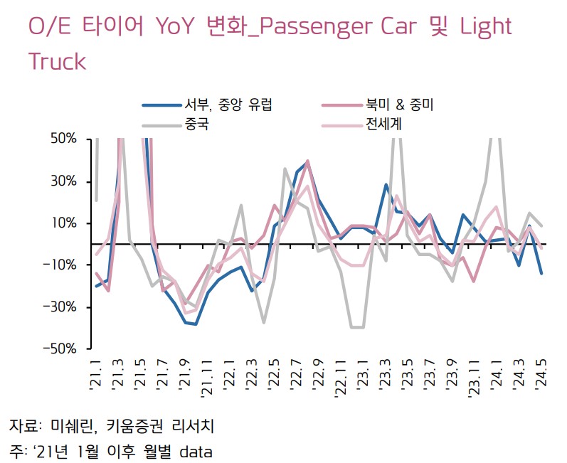 금호석유는 2024년 2분기 영업이익이 약 1,040억원으로 전기 대비 32% 증가할 것으로 예상됨. 이는 Consensus인 865억원을 약 20% 상회하는 수준임. 합성고무와 합성수지 부문에서의 수요 회복이 주된 요인으로 작용했으며, NB-Latex 수출량 증가와 R/E 타이어 수요 회복이 긍정적으로 작용함.