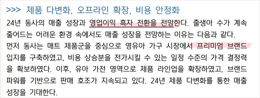 - 기술적 분석 내용: 유아용 가구 및 가전 제품 판매 호조