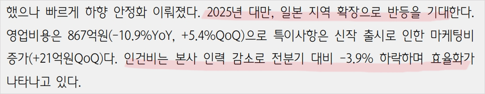 • 해외 확장: 2025년 대만 및 일본 시장 진출로 반등 기대