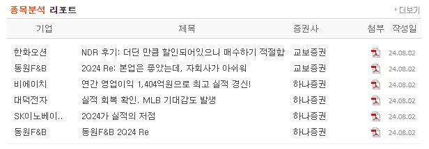 네이버증권리서치의 주요 포인트