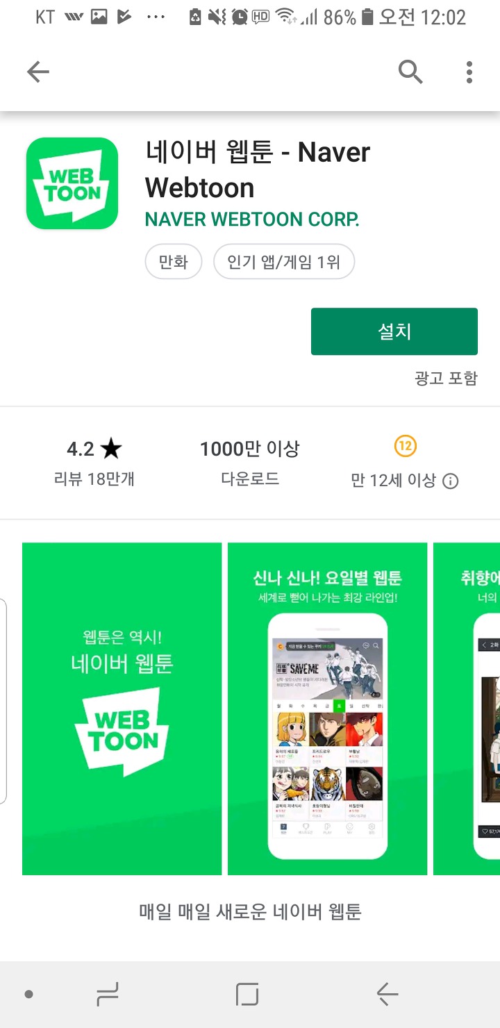 | 네이버웹툰 안드로이드 폰 다운로드 | |
