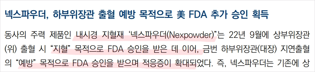 - 미국 FDA 하부위장관 출혈 예방 적응증 추가 승인