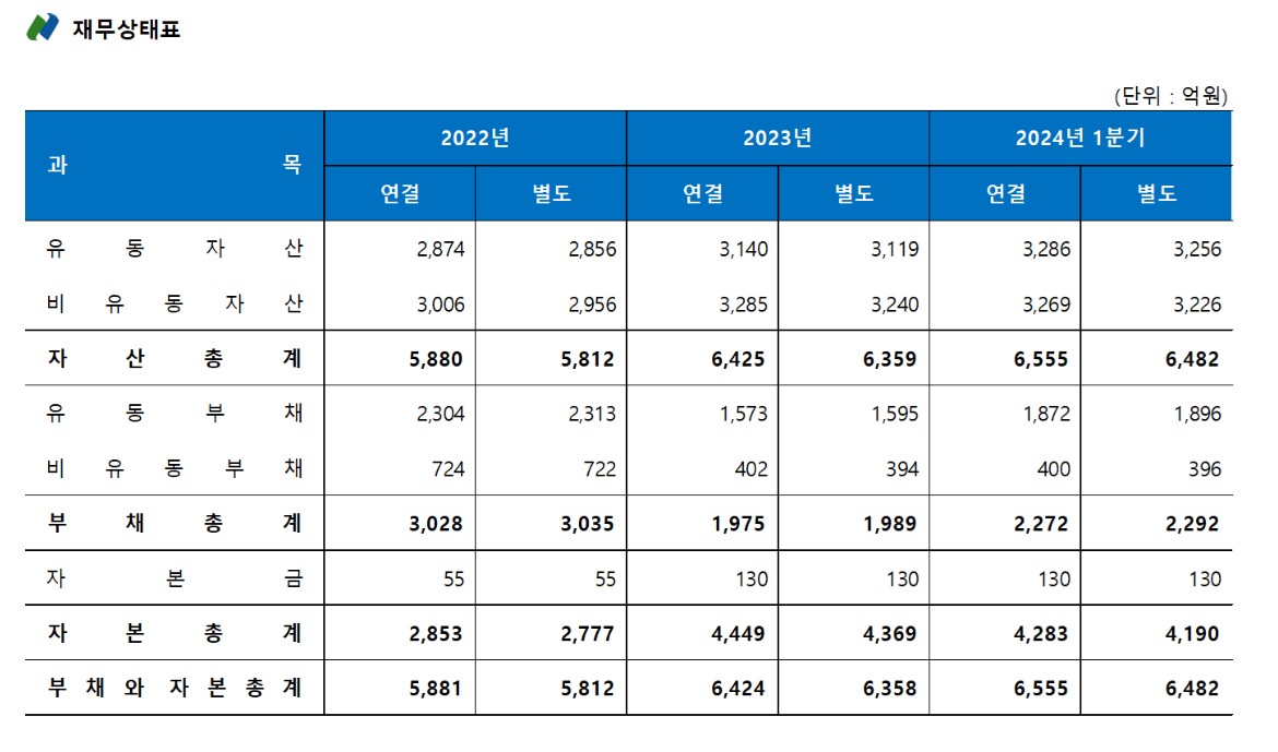 넥스틸의 재무상황은 안정적입니다. 2024년 1분기 기준으로 매출액은 1,259억 원, 영업이익은 10억 원을 기록하였으며, 부채비율은 44.4%로 동종 산업 평균보다 낮은 수준을 유지하고 있습니다. 이는 넥스틸이 향후 성장 가능성을 높이는 데 중요한 요인으로 작용할 것입니다.