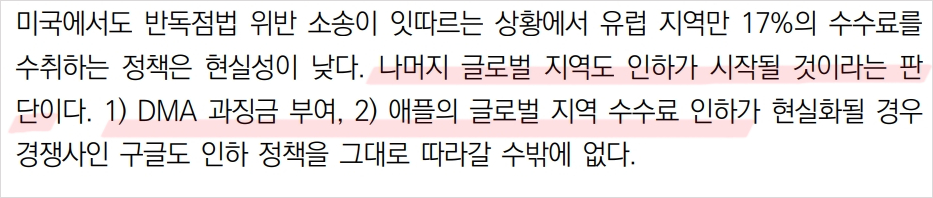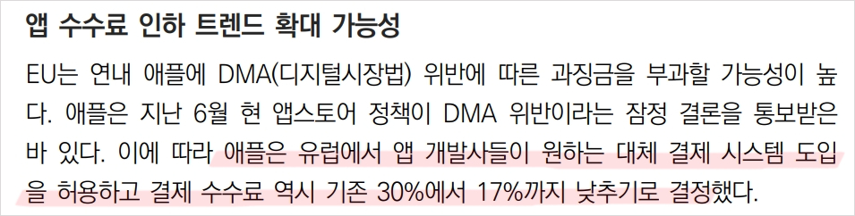 - 최근 이슈에 대한 분석 내용: 앱 수수료 인하 및 글로벌 시장 성장.