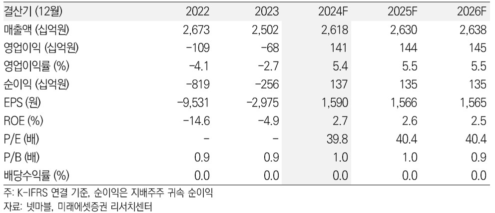 | 단위(원) | 2021년 | 2022년 | 2023년 | 2024년 1분기 |