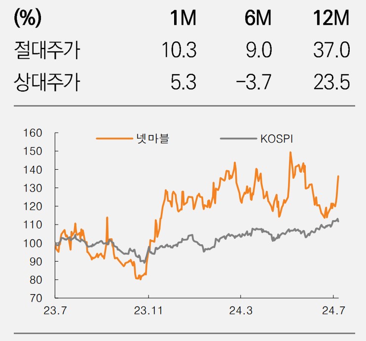 넷마블은 2024년 7월 15일 기준으로 게임 산업 내에서 강력한 입지를 유지하고 있음. 최근 출시한 모바일 게임들이 성공적으로 자리 잡으면서 실적 개선에 기여하고 있음. 특히, 해외 시장에서의 매출 비중이 증가하며 글로벌 게임사로서의 입지를 다지고 있음.