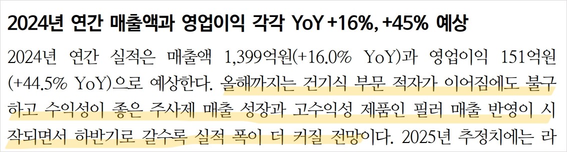 녹십자웰빙은 주사제와 필러 부문에서 강력한 성장세를 보이고 있음. 특히, 중국 시장에서의 성과가 주목할 만함. 신공장 완공으로 생산능력이 대폭 확대되었으며, 주사제와 필러 매출 증가가 기대됨. 향후 몇 년간 지속적인 성장 가능성 높음.