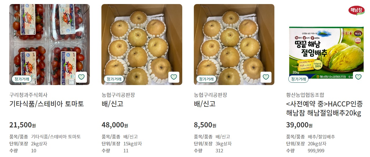 | 농수산물 인증 | 다양한 상품군 | 효율적인 물류 관리 |