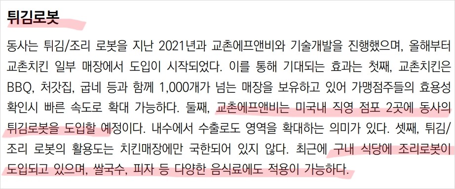 - 교촌치킨 매장에서 튀김로봇 도입