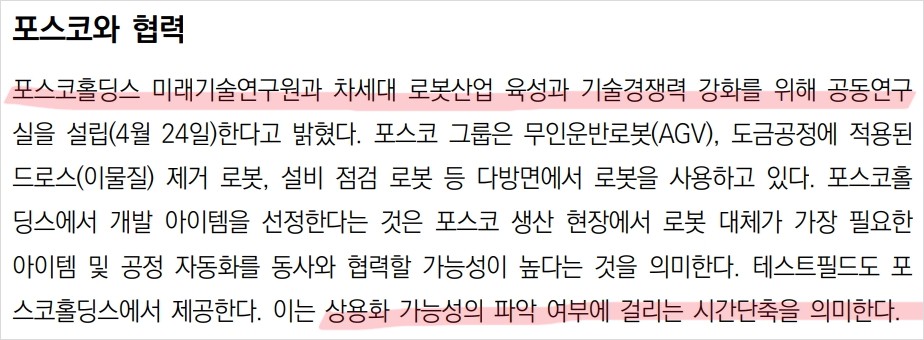 - 포스코와 차세대 로봇 산업 공동 연구