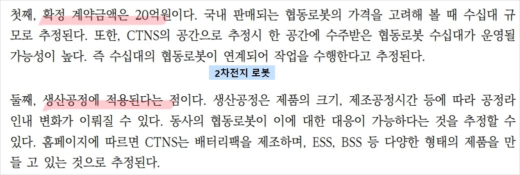 뉴로메카는 용접로봇과 튀김로봇 개발로 주목받고 있는 로봇 제조업체이다. 최근 HD현대로보틱스와의 계약으로 용접로봇을 공급하게 되며, 교촌치킨 매장에 튀김로봇 도입을 시작했다. HD현대 그룹뿐만 아니라 타 조선사로의 진출 가능성을 보이고 있다.