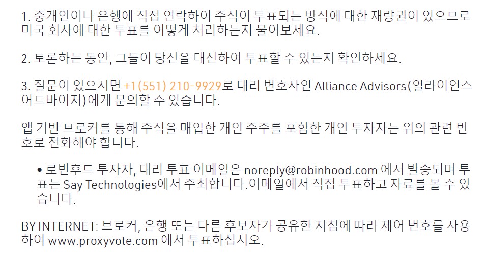 1. 본인이 사용하고 있는 증권사에 연락하여 미국주식 주주총회 투표 방법을 문의한다.