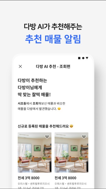 다방을 사용하면 손쉽게 원하는 매물을 검색하고, 상세 정보를 확인할 수 있습니다. 사용자 친화적인 인터페이스 덕분에 누구나 쉽게 사용할 수 있으며, 특히 검색 필터 기능을 활용하면 더욱 정교하게 매물을 찾아볼 수 있습니다. 매물 정보를 확인한 후에는 직접 연락을 통해 계약까지 진행할 수 있습니다.