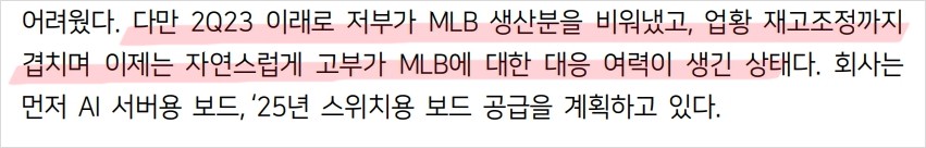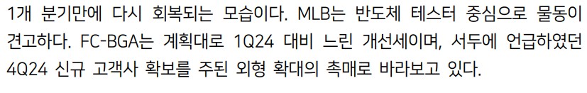 - 매출 성장은 메모리기판 및 MLB 중심으로 진행되고 있음.