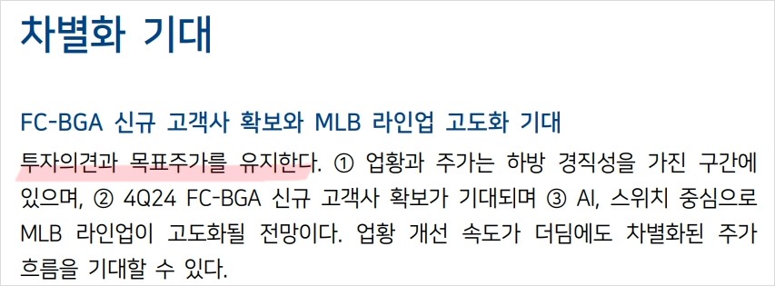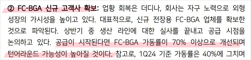 - FC-BGA 부문의 수익성 개선이 예상되며, 이는 주가 상승의 주요 요인이 될 것임.