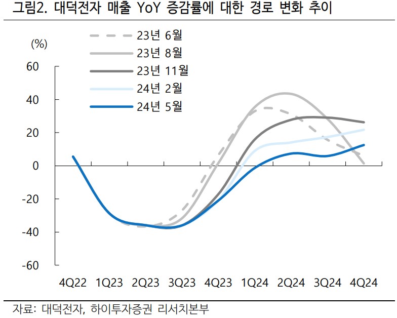 대덕전자는 2024년 4분기부터 FC-BGA 부문의 신규 고객사 확보를 통해 외형 성장을 기대하고 있음. 현재 업황은 다소 더디지만, 회사의 자구 노력과 고부가가치 제품으로의 전환을 통해 점진적인 성장이 예상됨. 특히, AI 서버용 보드와 스위치용 보드의 개발이 예정되어 있어, 향후 시장 점유율 확대가 가능할 것임. 또한, DDR5 메모리기판 수요 회복이 예상보다 빠르게 진행되면서 2분기 실적 개선에 기여할 것으로 보임. 이러한 요소들은 대덕전자의 매출 증대와 수익성 향상에 긍정적인 영향을 미칠 것임.