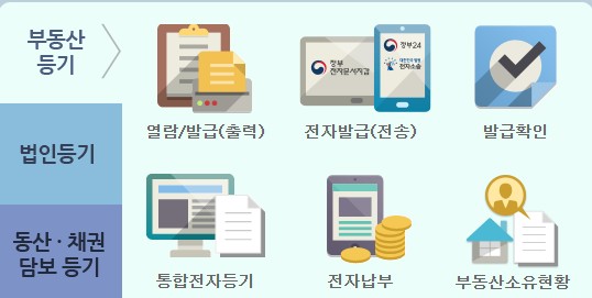 | 부동산 등기 | 법인 등기 | 동산 및 채권 등기 |