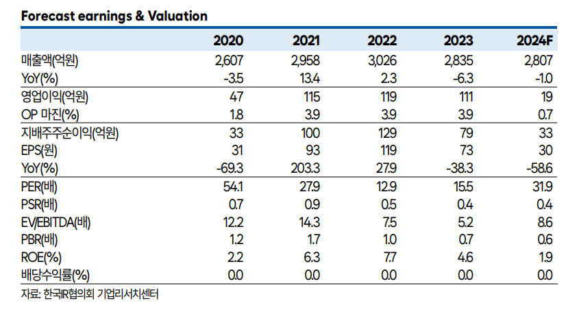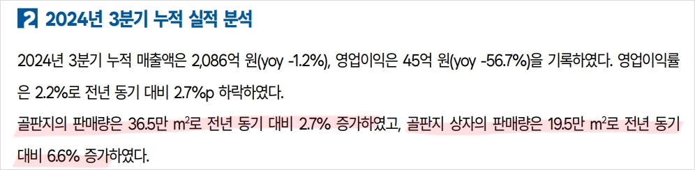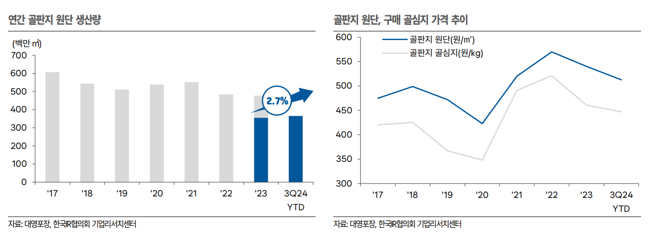 • 2024년 골판지 원지 가격 상승으로 실적 개선 기대
