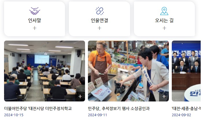 위 버튼을 누르면 더불어민주당 대전시당 홈페이지에 바로 연결됩니다. 대전 지역의 정치 소식과 주요 정책을 한눈에 확인할 수 있으며, 정확한 정보를 위해 공식 홈페이지에서 최신 소식을 확인하는 것이 중요합니다. 대전 시민들과의 소통을 위한 다양한 정보가 제공되고 있습니다.
