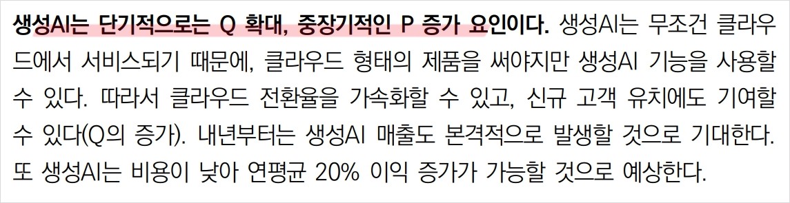 - 기술적 분석: 클라우드 전환과 생성AI 도입으로 매출 상승