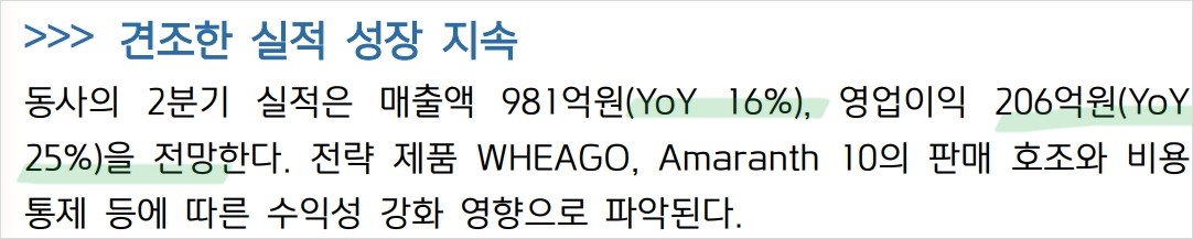 더존비즈온은 기업 업무 솔루션 제공하는 IT 기업임. AI 기술 활용한 ERP, 회계, 그룹웨어, 문서 관리 솔루션 제공함. 특히 AI 기술 적용한 신규 솔루션 개발과 금융 사업 확장 통해 성장세 이어가고 있음. 2024년 2분기 실적은 매출액 981억원(YoY 16%), 영업이익 206억원(YoY 25%) 전망함. 하반기에는 신규 AI 제품군(ONE AI, OmniEsol) 효과 본격적으로 반영될 것으로 기대됨.