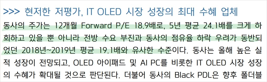 - 미래 주가 전망: IT OLED 시장 성장의 수혜로 주가 상승 가능성 큼
