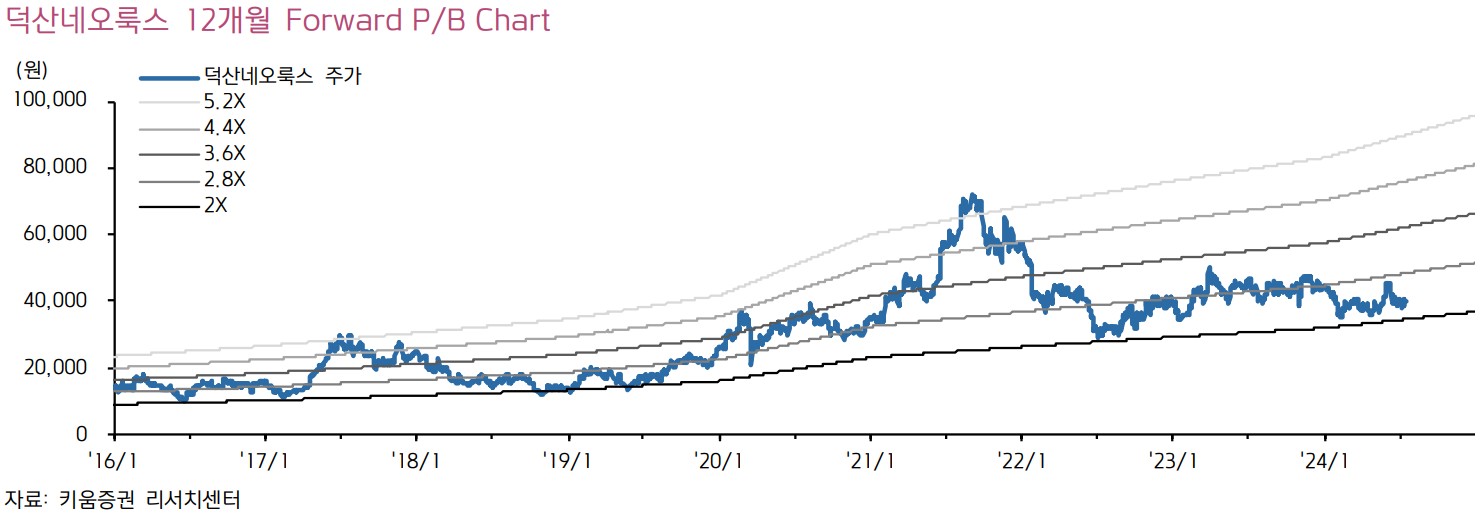 덕산네오룩스의 주가는 현재 저평가 상태로, 향후 IT OLED 시장 성장의 수혜를 받을 것으로 예상됨. 2024년 말까지 주가는 60,000원 이상으로 상승할 가능성이 큼. 이는 플래그십 스마트폰과 AI PC용 OLED 채용 확대가 주요 요인임. 덕산네오룩스의 주가는 2024년 말까지 60,000원 이상으로 상승할 가능성이 큼.