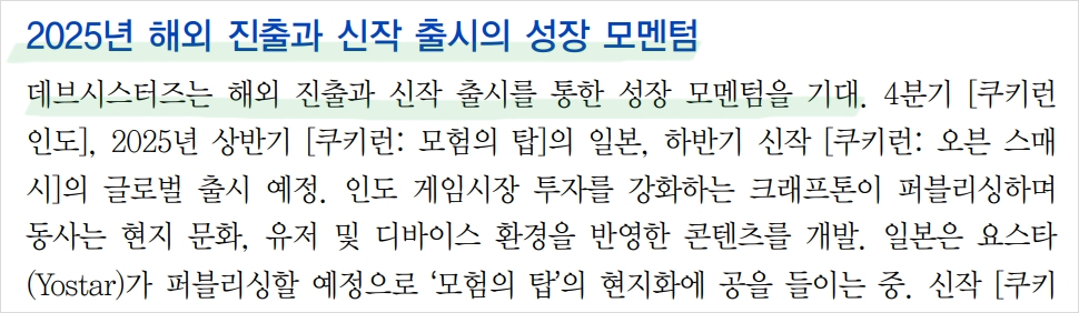 • 최근 이슈에 대한 분석 내용: 성공적인 글로벌 진출 및 신작 흥행 가능성.