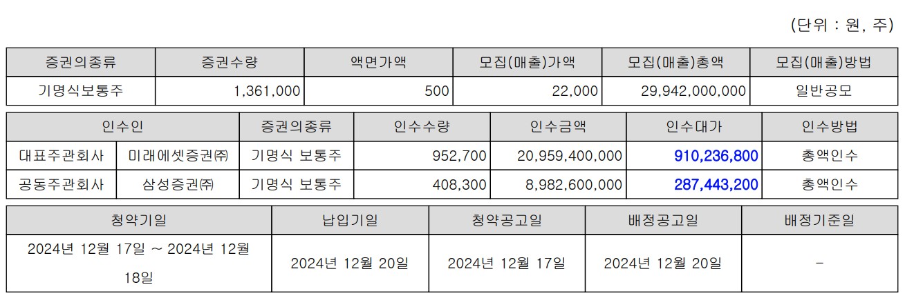 청약기일 2024년 12월 17일 ~ 12월 18일