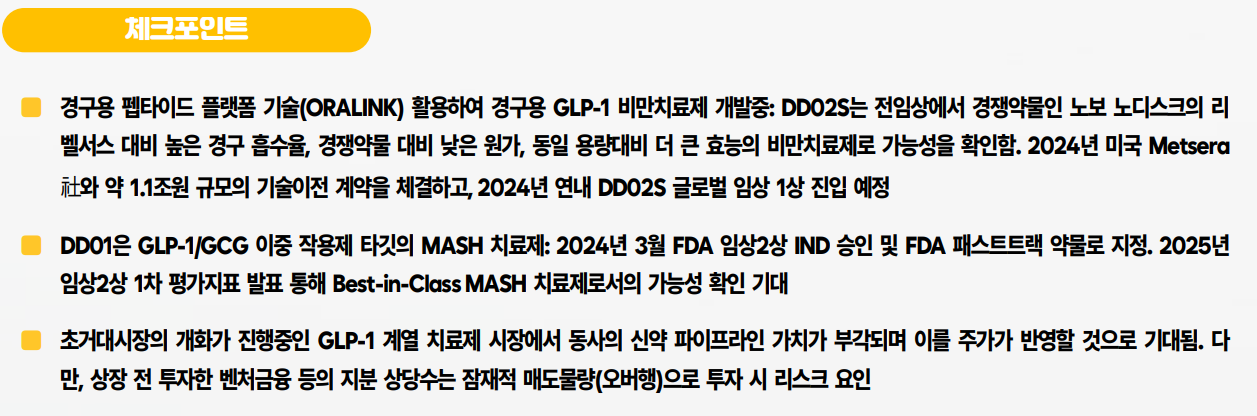 - GLP-1 비만치료제: 경구용 DD02S와 삼중 작용제 DD03 개발 중