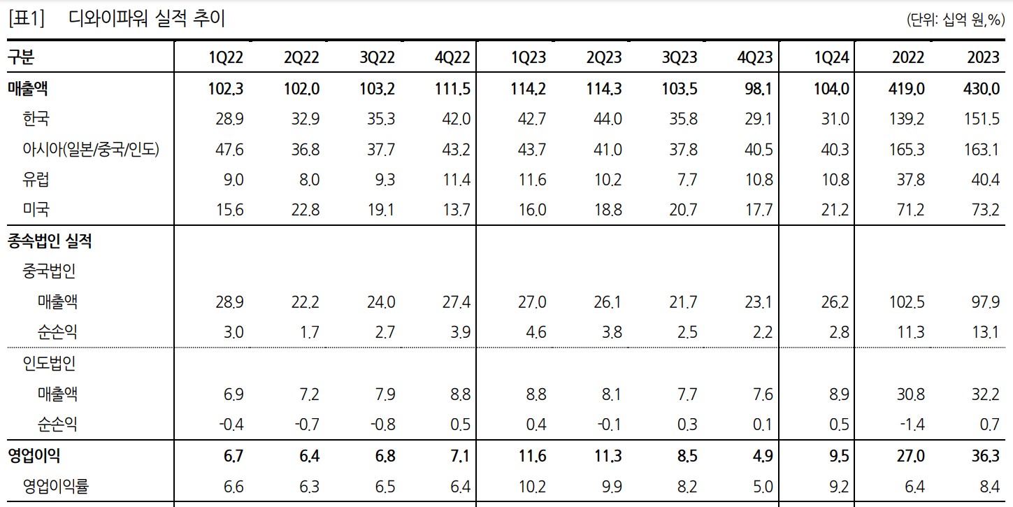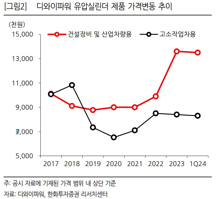 디와이파워는 유압실린더 분야에서 국내외 시장 점유율을 확대 중이며, 안정적인 실적을 유지하고 있음. 특히 미국과 중국 시장에서의 성장이 두드러짐. 국내 시장에서는 주요 고객사의 매출 부진이 있었으나, 하반기 금리 인하 기대감과 제조업 리쇼어링 확대가 실적 개선에 긍정적인 영향을 미칠 것으로 예상됨. 중국 법인의 실적 개선도 기대됨.