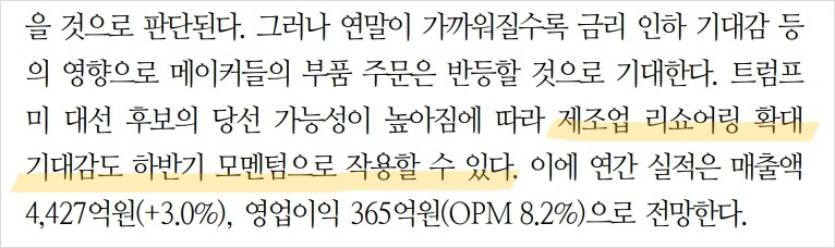 - 하반기 금리 인하 기대감과 제조업 리쇼어링 확대 기대