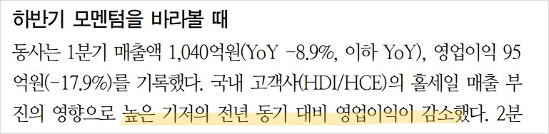 - 국내 고객사 홀세일 매출 부진으로 영업이익 감소