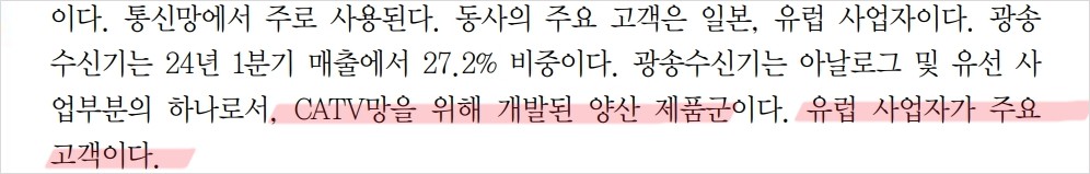 • 광증폭기 부문에서 주요 매출 비중을 차지하며, 일본과 유럽 시장에서 안정적인 수익을 창출하고 있음.
