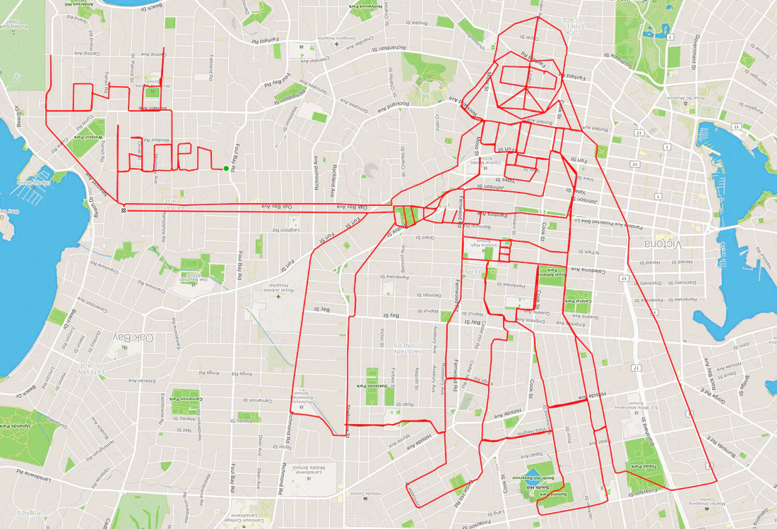 이 앱을 가장 잘 사용하는 방법은 그림을 그리는 거에요. 내가 그리고 싶은 그림을 설정하고 런닝 할 장소를 선택하면 알아서 경로를 만들어주는데, 경로대로 뛰면 기록이 되면서 그림이 그려집니다. 엄청 신기하죠? 해외에서는 이 그림 그리기가 유행하고 있으니까 따라해보세요. 아직 한국에는 유행하지 않은듯 해요.