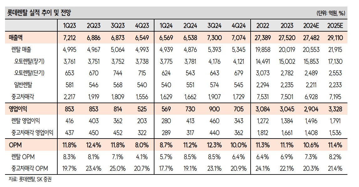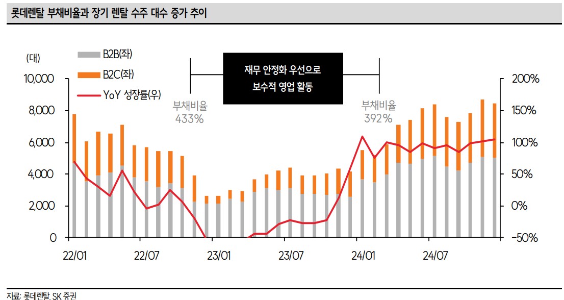롯데렌탈은 장기 렌터카와 중고차 렌탈 부문에서의 강세를 보이며, 단기 렌탈 부문에서도 회복세를 보이고 있음. 장기적인 성장이 기대되는 기업으로, 투자자들에게 주목할 만한 종목임.