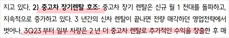 - 장기 렌터카와 중고차 렌탈 사업 강세