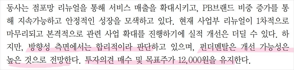 롯데하이마트의 목표주가는 12,000원으로 설정됨. 이는 향후 12개월 내에 달성 가능할 것으로 전망됨. 근데 나는 이 목표주가를 믿을 수가 없음. 10년 간 1/10토막 난 주식인데 이게 어떻게 다시 올라갈까? 라는 생각이 들었음.