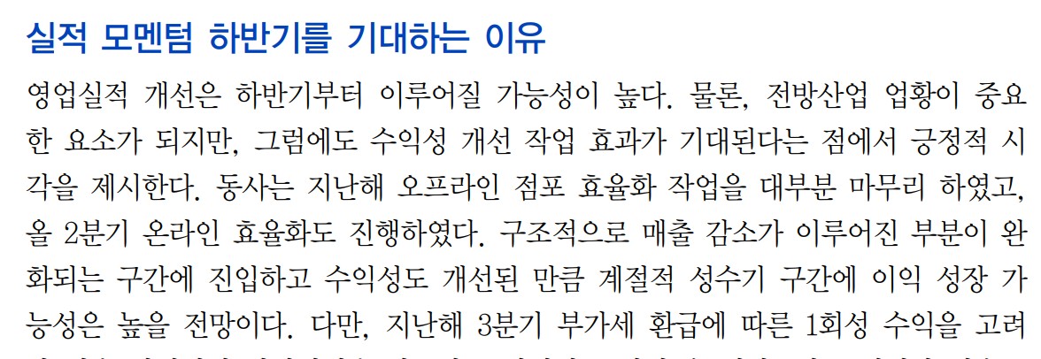 - 미래 주가 전망: 하반기 실적 개선이 주가 상승을 이끌 것으로 예상됨.