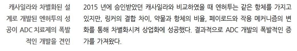 매우 효능이 높은 페이로드의 내약성을 개선하는 것이다. 이를 통해 용량 중 단 또는 감소 없이 장기간 치료가 가능하도록 해서 높은 효능을 유지하는 것이 다. 또한 내성이 발성한 경우 대응을 어떻게 하는 것인가도 중요하다.