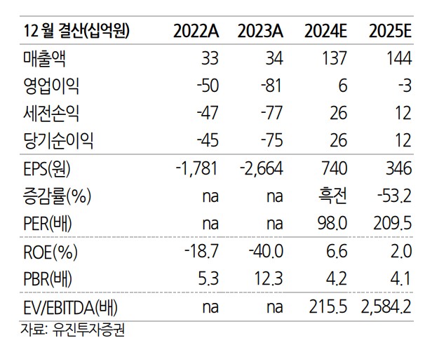 | 매출액 | 33억원 | 34억원 | 137억원 | - |