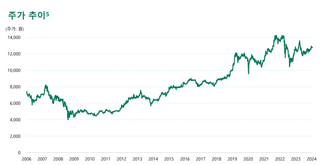 배당금을 보면 2019년부터 지속적으로 배당금을 늘리는데 2024년에는 770 ~ 780원 수준이 예상됩니다. 약 6%정도의 배당수익률이죠. 은행에 넣는 것보다는 훨씬 좋겠죠? ISA계좌를 통해 배당금을 받으면 세금도 절세되니까 은행 적금보다 훨씬 좋은 녀석입니다. 도대체 은행 예금에는 왜 넣는건지..?